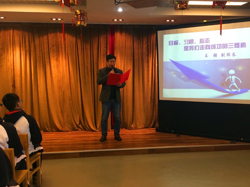 展望更远,眺望未来。王强副校长针对目标、习惯、心态三个方面为我们讲解了走向成功的三要素,告诉我们如何用目标激励自己奋斗。王校长地讲话内容主要分为三部分:一要有具体而明确的目标。王校长用一个耐人寻味的小故事向我们讲述了怎样明确自己的目标,让我们明确了持之以恒的坚持目标的重要性。二要培养良好的习惯。这里的习惯是指日常生活中的行为习惯。王校长用一串触目惊心的数字向我们揭示了中国人的不文明,也警示了我们要争做文明河海人,让文明之花开遍校园,开遍祖国。三要打造优质的心态。正如王校长所说,“退一步海阔天空,忍一时风平浪静”,学会宽容,告别野蛮;学会面对,告别退缩;学会正确对待荣誉,也要学会不随意嫉妒。最后,王校长衷心祝愿每位同学能保持良好学习状态,积极生活,勤奋学习,努力拼搏,在未来的学习中取得骄人的成绩!