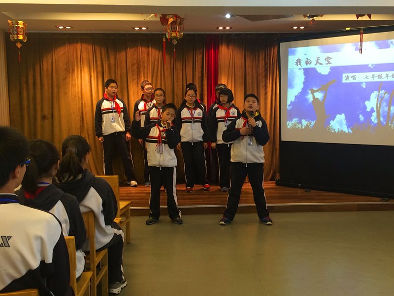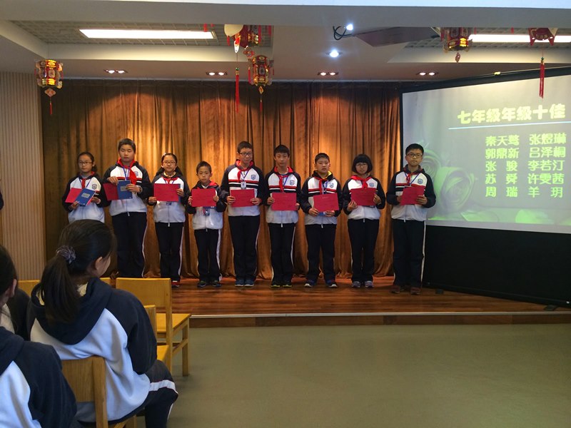 表彰佳绩,共享喜悦。回顾走过的半学期的路程,一路汗水,一路欢笑。同学们积极参加市、区各级各类比赛活动,并取得了优异的成绩。大会首先对这些同学进行了表彰,张张奖状都彰显了河海学子的勤奋刻苦、奋斗不止,他们的成功激励着更多同学的信心,有了超越的目标,有了奋斗的计划。特别是“年级十佳”和“班级单项奖”的公布,让表彰大会达到高潮。七年级十佳的小合唱《我的天空》震撼了全场,感染着每位同学。那豪迈有力又充满希望的歌声,在耳边久久回响,他们用自己的努力告诉我们:要想看得更远,就必须站在巨人的肩上,满怀希望地驶向胜利的彼岸!