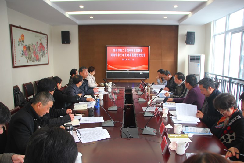 12月15日下午,在常州市第二十四中学天宁分校举行河海中学三年主动发展规划论证会。由常州市教师发展中心主任李岩、常州教育报刊社社长鲁兴树、常州市勤业中学校长岳亚军、常州市清潭中学校长孙国平和原常州外国语学校校长周荷琴组成的专家组对我校三年主动发展规划进行了论证。常州市教育局副局长常仁飞、基教处副处长潘莉,常州市第二十四中学总支书记赵卫勇、校长张慧群全程参加了规划论证会。