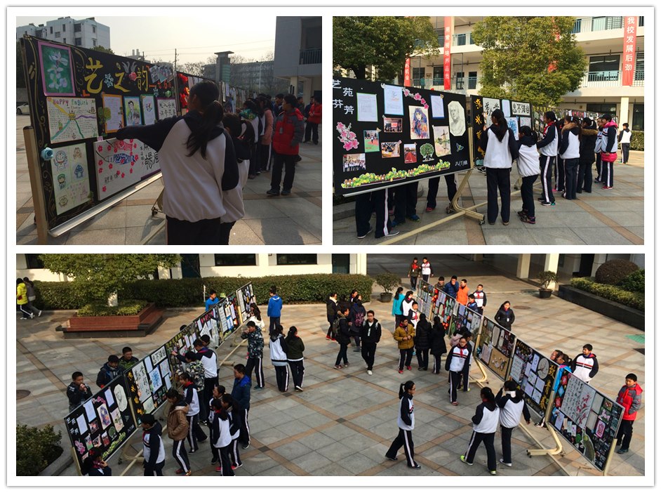 2015年已进入尾声,而河海中学的2015校园艺术节却如火如荼的开展着,进过前期的精心筹备与策划,依然分展示和表演两个板块进行,同学们积极报名,踊跃参赛,有的项目如绘画、书法、环保小制作、演讲等先一步进行了现场比赛,而12月28日推出的展板,则展示出七八年级每个班级与众不同的特色。
