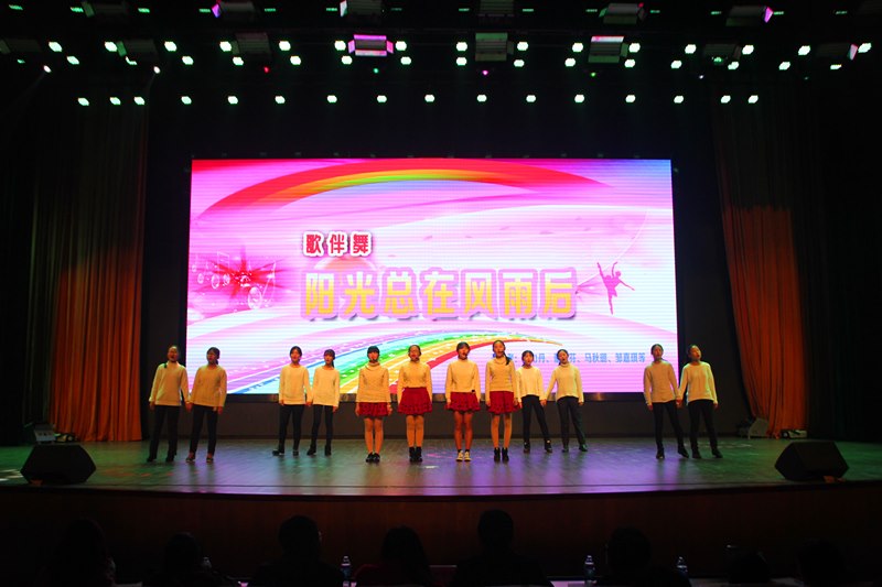 激情点燃,闪耀梦想。九年级同学真情演唱的《阳光总在风雨后》,更是将舞台推向了又一个高潮:动人的表演,激情的誓言,让我们感受到九年级无悔的誓词——阳光总在风雨后,2016,希望就在我们手中。是啊,经历风雨的洗礼,阳光才会更加灿烂;接受风雨的挑战,他们终将迎来灿烂的阳光。最后,教导处王国坚主任宣布文艺汇演的成绩并颁发了奖状。今天,孩子们在这里画上了2015年艺术之梦的完美句号;明天,我们陪伴他们一起共圆2016年的无限梦想!