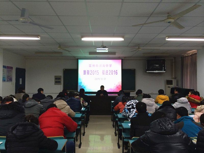 在辞旧迎新的交接点——12月31日,河海中学召开教工会议,超前谋划,尽早落实本学期结束工作,蒋顺国校长主持本次会议并作了讲话。