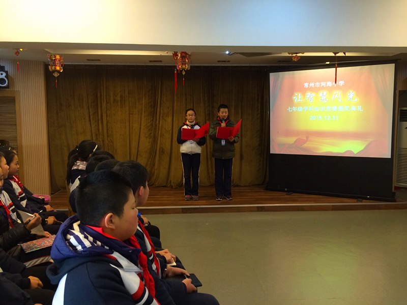 学习让我们拥有智慧,而我们让智慧闪光。为了表彰七年级同学在学科趣味知识竞赛中的优异表现,河海中学于12月31日下午举行了“让智慧闪光”七年级学科趣味知识竞赛颁奖典礼。
