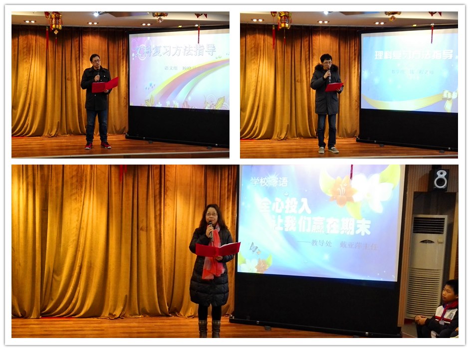 老师们的方法引领,同学们的经验分享,都让我们受益匪浅。同学们,期末的号角已经吹响,让我们行动起来,拿出我们的智慧,拿出我们的勇气,用激情拥抱灿烂的明天,为2015画上圆满的句号!