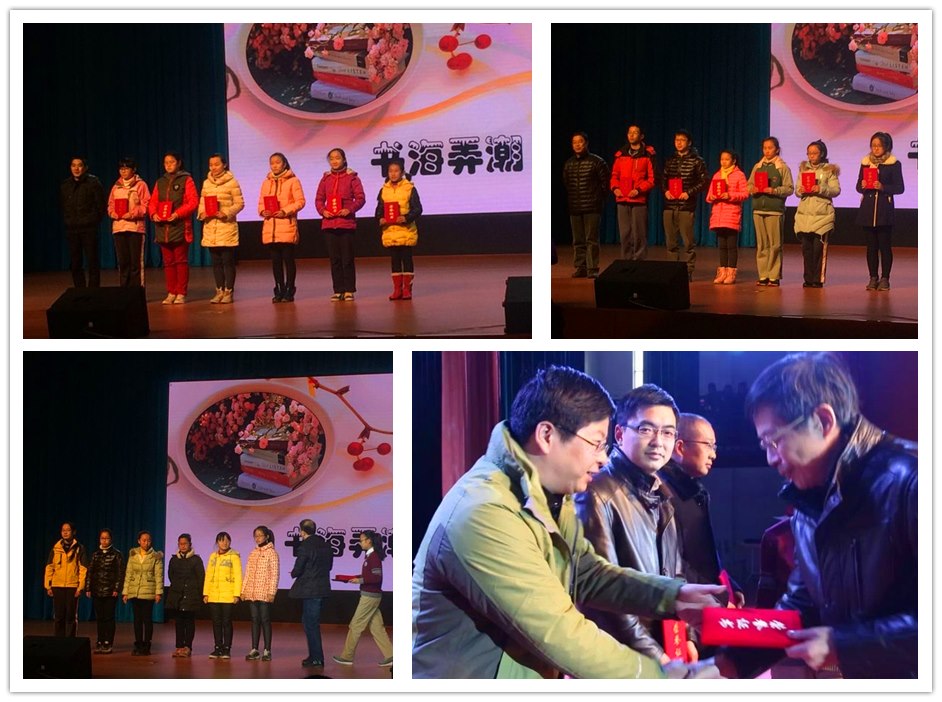 在“书海弄潮”环节中,2015年暑期“好书伴我成长”阅读征文比赛获奖的学生代表、优秀指导教师代表和获优秀组织奖的学校代表依次上台领奖。河海中学在此次活动中成绩斐然,九(5)班邓淇和九(3)班肖婉淑等两位同学获得了一等奖,易雨璇等三位同学获得了二等奖,刘佳琪等四位同学获得了三等奖,刘璐和陈光华老师获得了优秀指导教师奖,我校也荣获优秀组织奖。