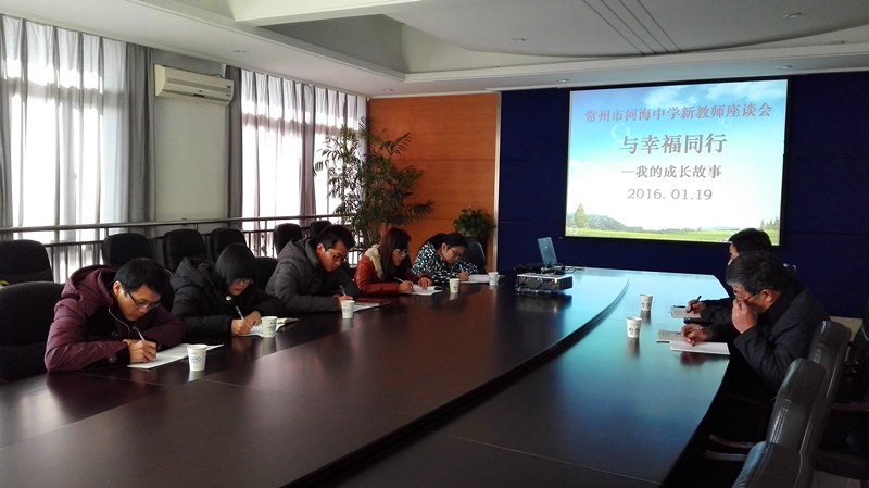 为了解新教师的学习、工作、生活情况,同时也为了让新教师们尽快转变角色,逐步成长起来,01月19日下午,河海中学召开了《与幸福同行——我的成长故事》为主题的新教师茶话会。校长蒋顺国和办公室主任赵军参加了此次会议。