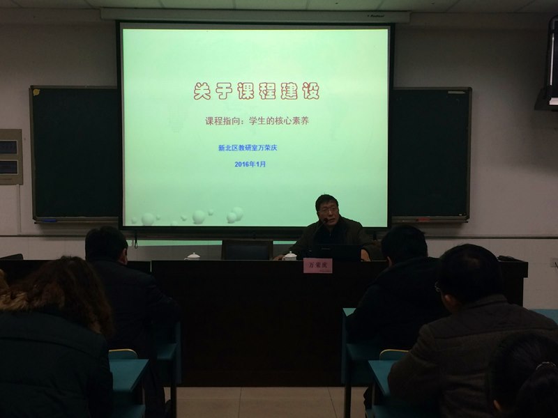 第二阶段的校本培训是万主任带来的精心准备的精神大餐——课程建设专题讲座,万主任首先提出了学生核心素养的意义,然后就国家课程、综合实践与校本课程、学科教研组的课程建设等三个版块清晰地梳理了学校课程建设的各个环节,其中还融入了他对教学常规、学生培养、教师专业发展等方面的体会和思考,为我们明晰了课程开发的思路,指明了今后努力的方向。