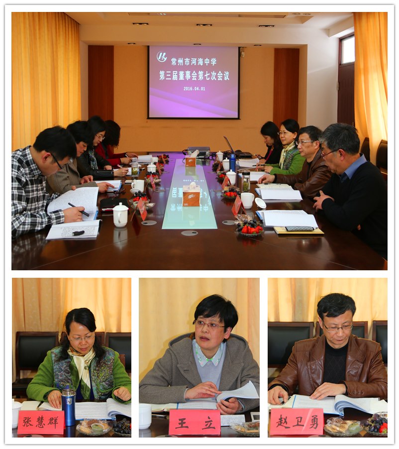 04月01日下午,常州市河海中学第三届董事会第七次会议在常州市第二十四中学举行。赵卫勇书记和张慧群校长出席并作讲话。