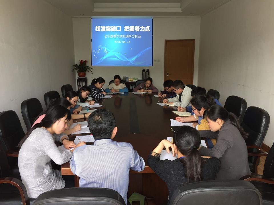 04月13日下午,常州市河海中学七年级全体教师齐聚会议一室开展阶段教学质量调研分析。会议由教导处芦启顺副主任主持。