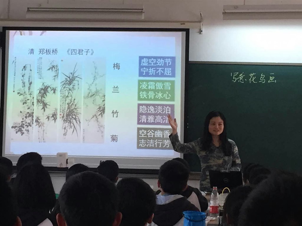 两位老师针对同一课题,根据自身的教学特点,从不同的切入点用不同的教学方式来诠释自己对于中国写意画的理解,让学生领会了中国写意画的托物言志和借物抒情的寓意,较好的完成了教学的三维目标。