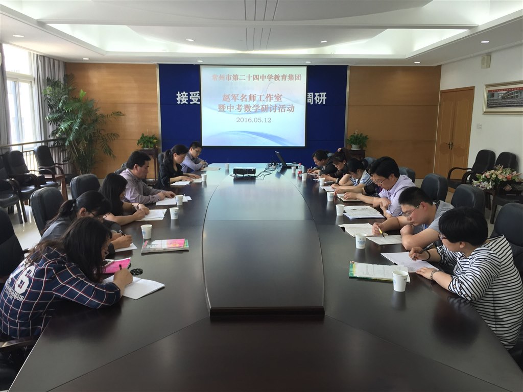 05月12日下午,常州市第二十四中学教育集团赵军名师工作室暨中考数学研讨活动在河海中学举行,工作室全体成员和我校全体数学老师共同参与了本次活动。