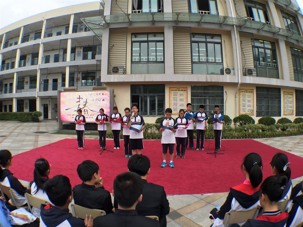 八(1)班满怀感恩之心,用心演绎着《祖国啊,我亲爱的祖国》,深情款款地毫无保留地表达出对祖国的爱。绵绵话语,浓浓情意,着实令人感动。八(3)班的同学们身着具有时代意义的中山装,以满腔的热血、丰富的感情、蓬勃的气势带来的《五四永不熄》。激昂的旋律、动听的嗓音、娴熟的技巧,一下子点燃了观众们的热情,让我们仿佛看到了滚滚的波涛,辽阔的田野,充满豪情壮志的青年,祖国的红旗在迎风招展。