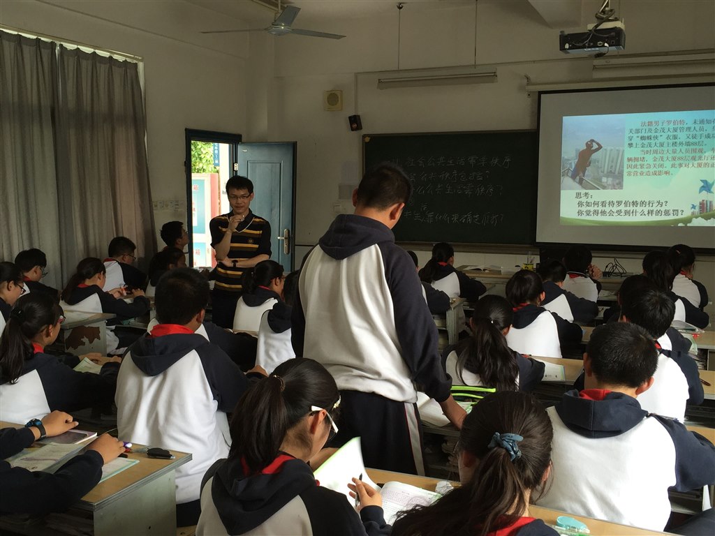 骨干教师智慧启迪。两位数学老师周栋、季赛娣课堂教学重视数学思想与方法的渗透与指导,学生独立思考问题、适时练习实践的课堂习惯,教师从容淡定步步深入的引导点拨,这一幕幕让听课老师感同身受,学生就这样在教师的追问补问中,生生互动、师生互动,不断地进行思维的碰撞。语文徐艳围绕文本将新闻知识融入实践活动中,在一次次情感朗读和一次次亲切对话中,提升了学生能力,升华了课堂的智慧。生物
