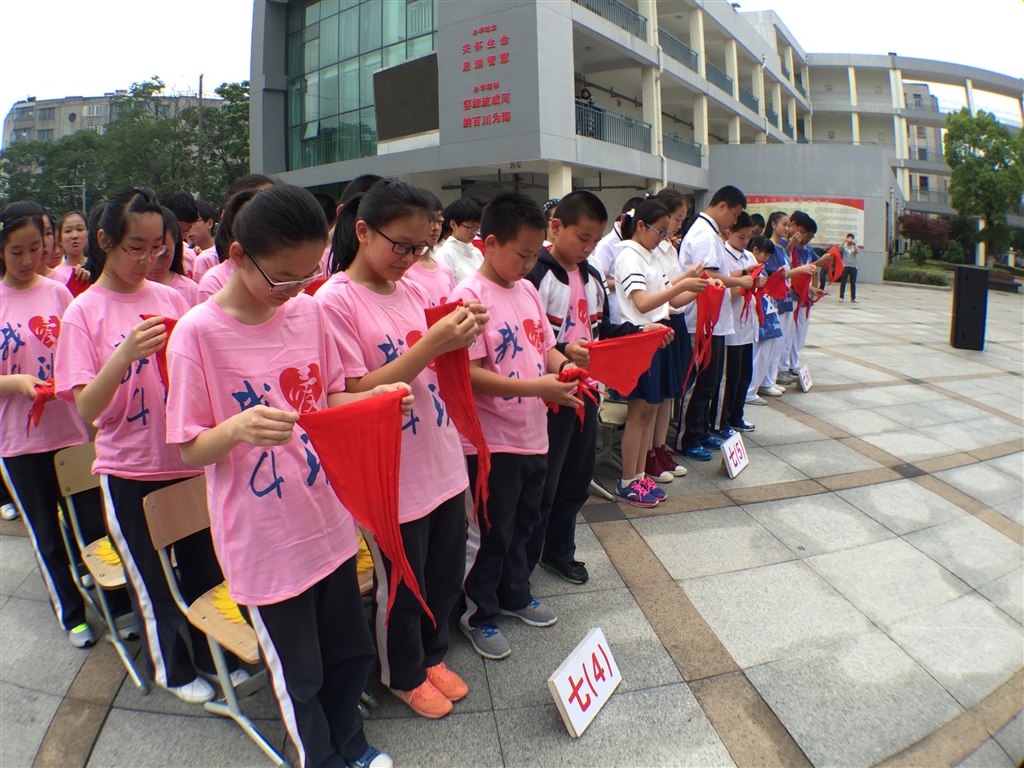 动听的不只是声音,更是希望的种子萌芽的喜悦。班歌大赛很快落下帷幕,但我们依然挺直地坐在座位上,等待少先队员的离队仪式。这意味着我们将不再是懵懂无知的孩童,不再是头脑里满是天真想法的孩子,我们在不知不觉中成长懂事,在不知不觉中长大成人。离队仪式开始,七年级三百多名学生一齐起立,最后唱响《少年先锋队队歌》,嘹亮的歌声中透露着我们的青春活力,我们的勇往直前。我们小心翼翼地珍藏好飘荡在胸前、陪伴我们多年的红领巾,用心聆听着教师代表唐新亚老师对我们的青春寄语,许下誓言,勇担责任,路在脚下,希望就在前方!