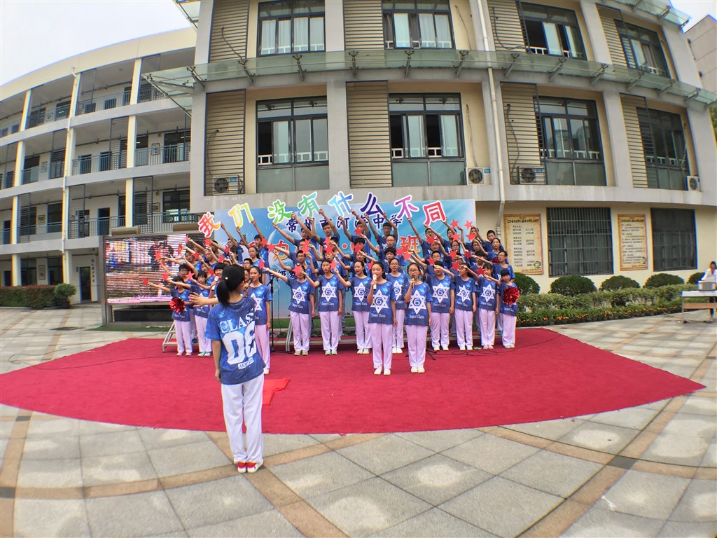 七年级的六个班,代表着六种班级文化,也代表着六个奋发向上的班集体的心声。各班的创意可谓是层出不穷、风格各异。看,一个个或在服装上、或在队形上、或在演唱方式上下功夫,纷纷用优美的歌声、新颖的创意,充分展示了本班的特色。听,有气势磅礴令人为之激动的,也有温情款款让人为之沉醉的,一言一行中都彰显的班级的团结。瞧,七(1)班首当其冲,带来歌曲《Try》,瞬间点燃了现场气氛,活泼的舞蹈,整齐的动作,嘹亮的歌声,无一不透露着同学们蓬勃的青春活力。七(4)班的同学自然也毫不逊色,一首《我们走进十月的阳光》让我们缅怀过去,畅想未来,师生共唱,其乐融融,展现了他们的阳光与温馨。七(6)班带来的《没有什么不同》更是将现场氛围推向了高潮,自信的歌声是他们最有力的语言,整齐的队伍是他们班级凝聚力的体现,别具一格的道具更是突显了他们对班级文化强有力的表达,博得了观众们的一致好评。接下来七(3)的一首《仰望星空》,充满了自由蓬勃的朝气和澎湃跳跃的力量,展现了同学对未来的坚定信念。七(5)班同学带来了一首经典儿童歌曲《让我们荡起双桨》,甜美的歌声顿时唤起观众心中最美、最真的记忆。最后,由七(2)班同学压轴出场,为大家带来励志歌曲《Try everything》,活泼可爱的卡通人物深情演唱沸腾了全场,透着无限热情与活力的歌声回荡在校园每个角落。