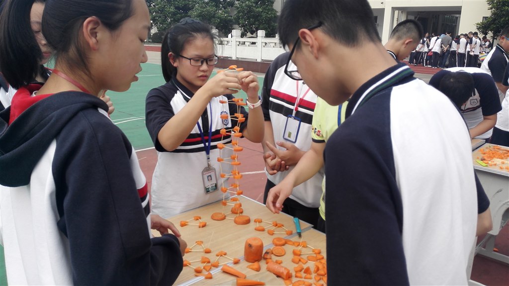 两根胡萝卜,100根牙签,再加上无穷的想象力,等于无数种新奇的建筑。有创新就有收获,在节能建筑的比赛现场,参赛选手不断尝试用创新思维搭建不同的建筑,在不断协调、讨论的过程中,搭建了多种多样的胡萝卜建筑,有利用三角支架的,也有利用圆形基底的,都在比赛中取得了较好的成绩。