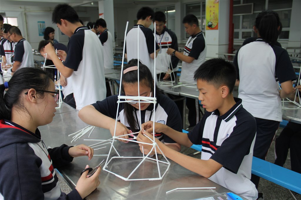 科技,永远是人类进步的阶梯。为了培养同学们的科学思想、创新精神和实践能力,给同学们提供施展才华的舞台,营造良好的创新教育的学校氛围,河海中学特举办了以“放飞梦想,智慧前行”为主题的趣味科技节。本届科技节有魔方、鸡蛋撞地球、节能建筑、水火箭、纸牌承重等十一个挑战项目,七、八年级同学踊跃参与。06月06日下午,一场激烈的角逐赛在操场上拉开帷幕——