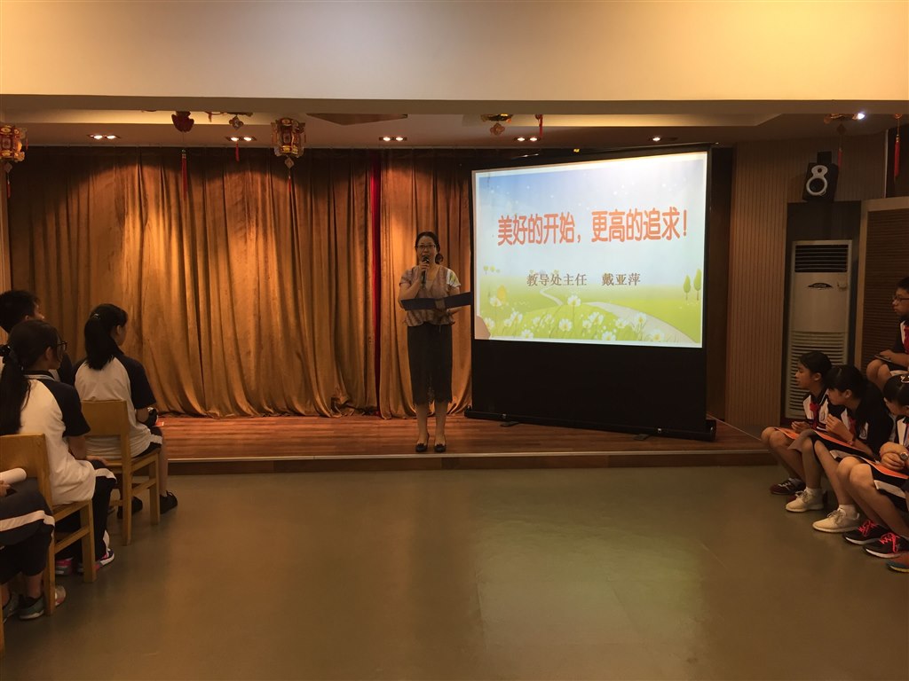 表彰会最后,各年级教师代表高小丽、季赛娣、陈莉向全体同学寄语,她们的话语化作潺潺细流,滋润着每个同学的心田。教导处戴亚萍主任总结了开学以来各年级的进步之处,并代表学校向大家提出了新学期的几点要求:创设一个文明有序的和谐环境,争做“文明的使者”;培养一个自主自愿的良好习惯,成为“学习的主人”;树立一个追求更高的坚定信念,勇当“行动的巨人”。她希望全体同学团结协作,让责任成为习惯,让习惯成为动力,在这美好的开端,朝着更高的目标前行。