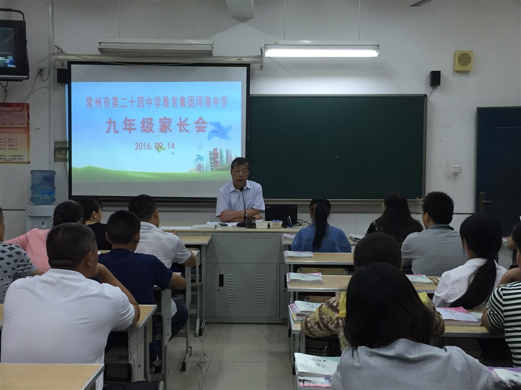 细雨绵绵,正值中秋佳节前夕,河海中学召开了2017届九年级学生家长会议。09月14日晚上6点,会议正式开始,议程有三。