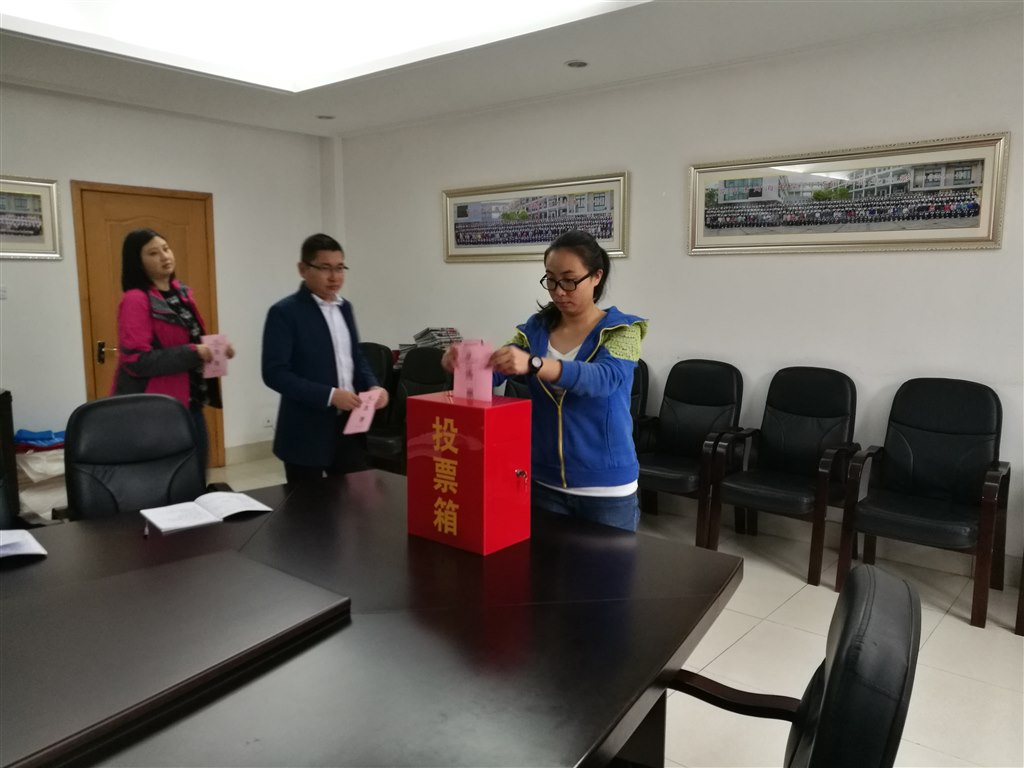 首先,上届党支部书记蒋顺国同志向大会作第二届支部委员会工作报告。他依据基层党组织的基本任务与职责,结合办学情况,全面回顾了上一届支部委员会的工作,总结了付出与收获,盘点了不足与整改。随后,大会通过了选举办法、监票人、计票人名单,宣读了新北区社会事业局党工委《关于同意中共常州市河海中学委员会换届选举的批复》,简要介绍了支部委员候选人情况。最后,全体党员进行了无记名投票,并当场统计和宣布选举结果。