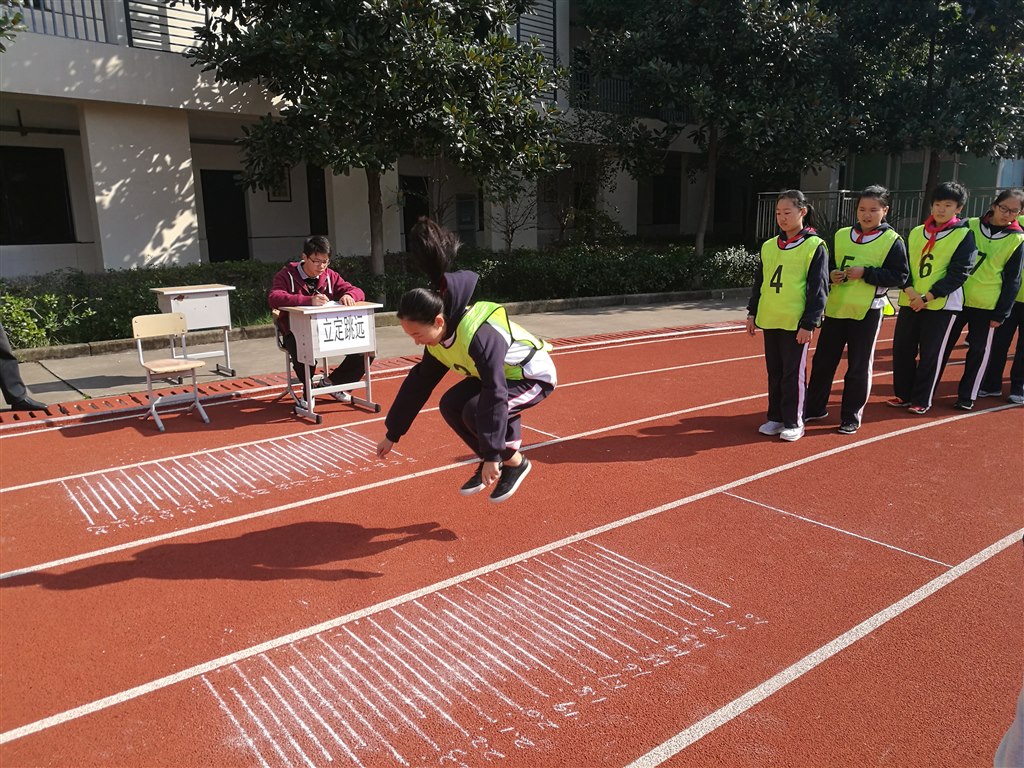 下午1点15分,检测正式开始。三个年级按照时间分段有序准备,抽测的学生排着整齐的队伍,在班主任的带领下走向检录区,同学们脸上很是兴奋,个个跃跃欲试。在体育老师解读监测项目和规则之后,同学们穿上鲜艳并且标有号码的马甲,跟随老师掷地有声的口令,积极做着热身运动。随后的检测过程中,同学们按照检测老师的要求,进行了相应的测试,无论是