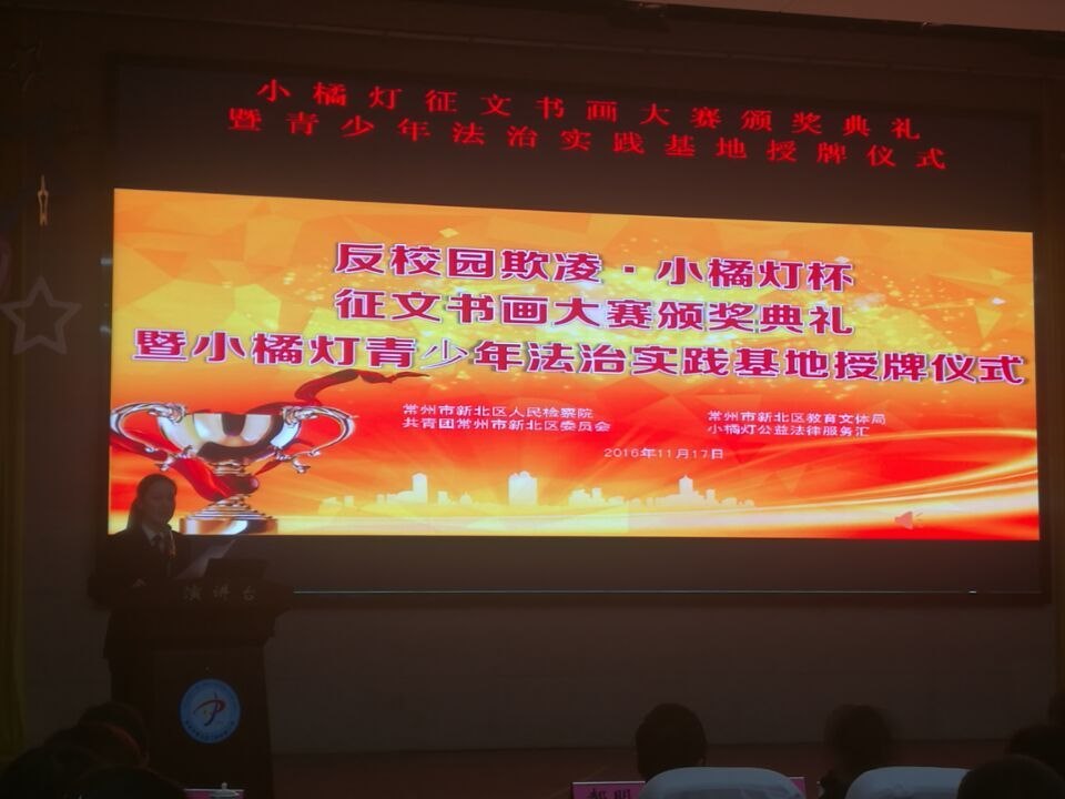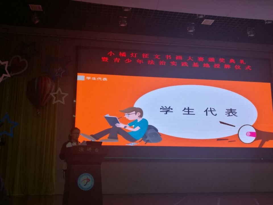 这不仅是一次颁奖典礼,也更是一次法治教育,让我彻彻底底的明白了什么是小橘灯,通过学生代表,家长代表,教师代表的真情流露,让我明白了青少年是这个国家希望的种子,而法制教育(小橘灯的存在)则是一片肥沃的土壤,呵护者希望,供希望成长。