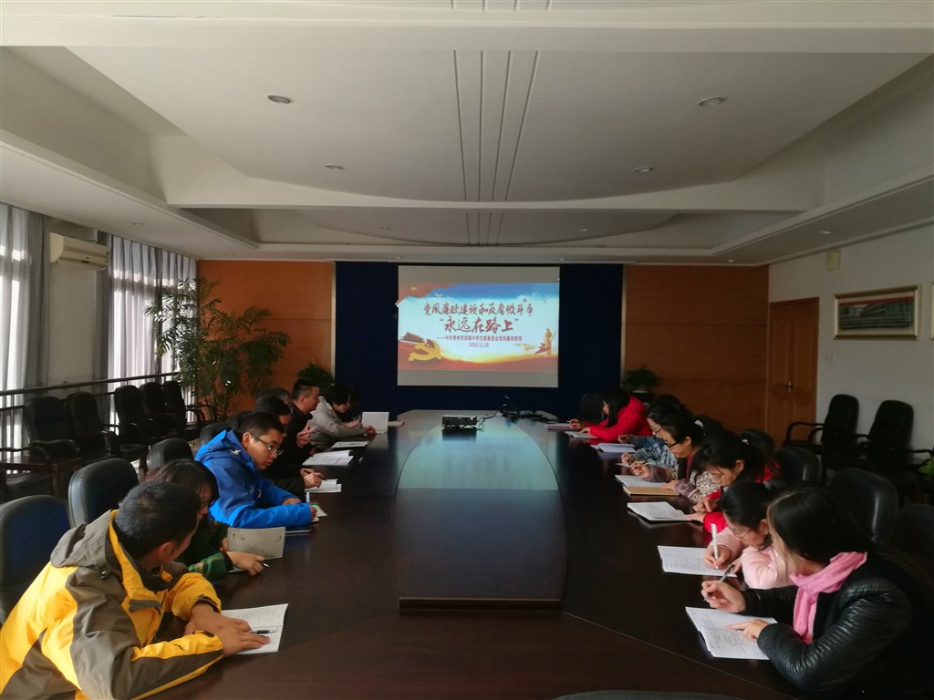 全体党员认真观看了专题片《永远在路上》的第一集《人心向背》。专题片通过一个个鲜活的案例,以案为鉴、以案明纪,深刻反映了党的十八大以来,党中央坚持全面从严治党、推进党风廉政建设和反腐败斗争的坚定决心,具有很强的警示教育意义。