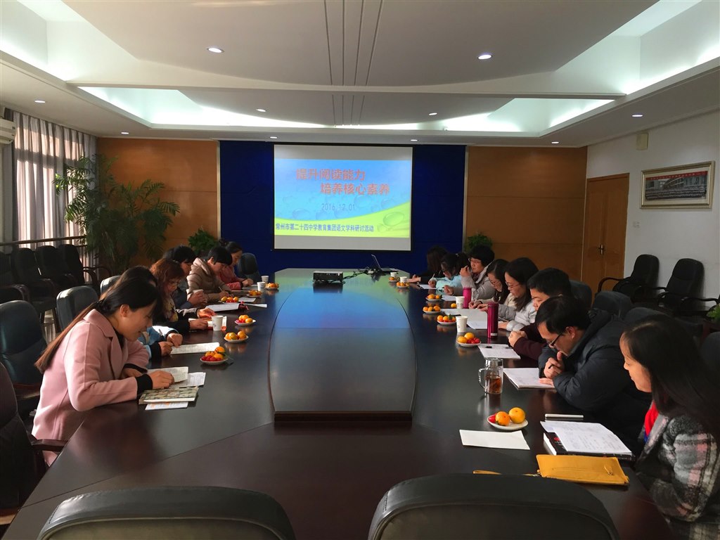 12月01日下午,二十四中教育集团三校区关于“语文的深度阅读”课题研讨活动在河海中学举行。来自核心校区和天宁分校的八年级语文备课组老师及我校所有语文老师积极参与了该课题活动。首先由我校徐艳老师为大家上了一堂精彩的研讨课《都市精灵》。课堂上徐老师以随笔这一文体为切入点,精心创设了四个精致而富有诗意的教学情境:发现主旨、发现构思、发现语言、续写小诗。在徐老师诗化般语言的带领下,同学们深入领悟了本文主旨之深远,构思之巧妙,品味并赏析了本文语言之生动,还创作了一首首精美的小诗。学生活动多彩而扎实,或跳读感悟,或朗读传情,或品读赏析,充分体现了以学生为主体,重视学生的感悟和体验的教学理念。整堂课内容丰富,教学环节紧凑,使学生的阅读体悟能力、分析概括能力、语言的赏析和运用能力得到了明显提高,这也充分展示了徐老师日趋成熟的教学智慧和艺术。