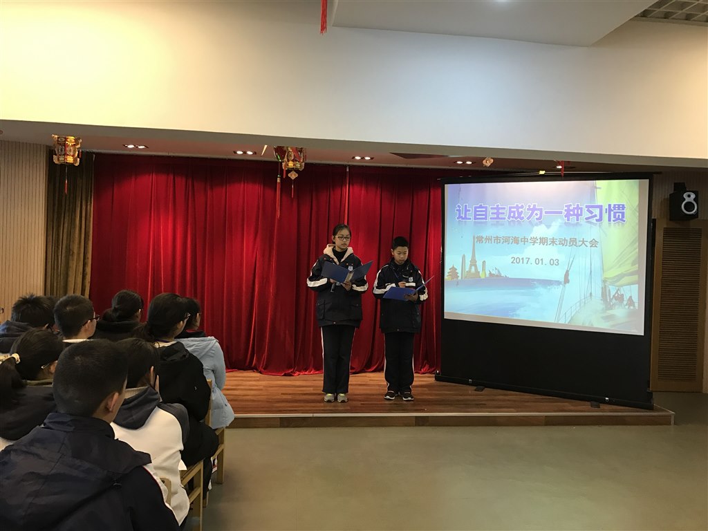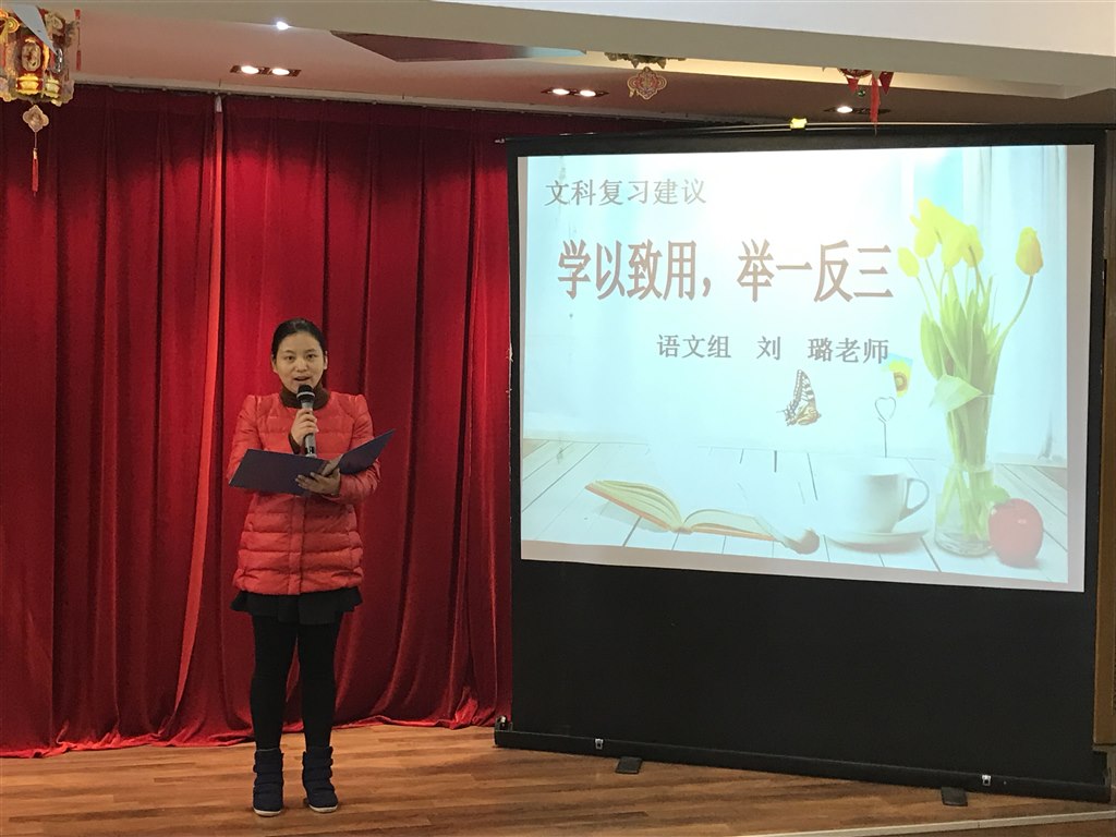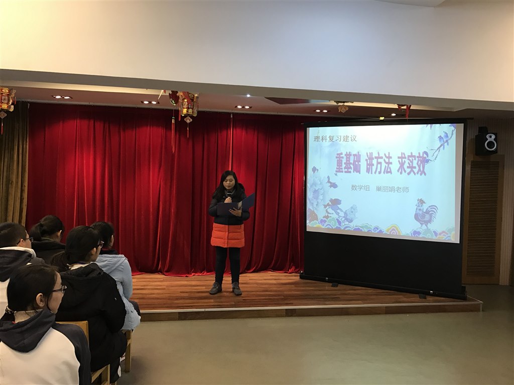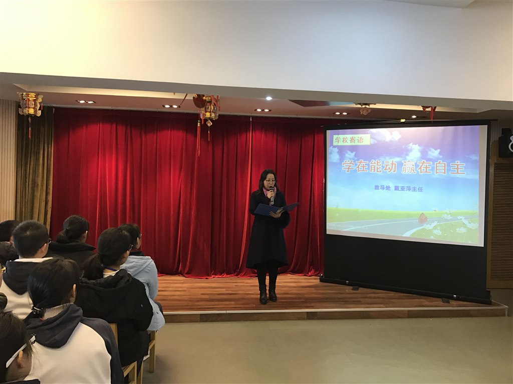 教导处主任戴亚萍代表学校寄语全体学生:学在能动,赢在自主。把握复习中质与量的关系、学与思的关系、正确与错误的关系、文理交替的关系,要构建体系,强化记忆,注重技巧。
