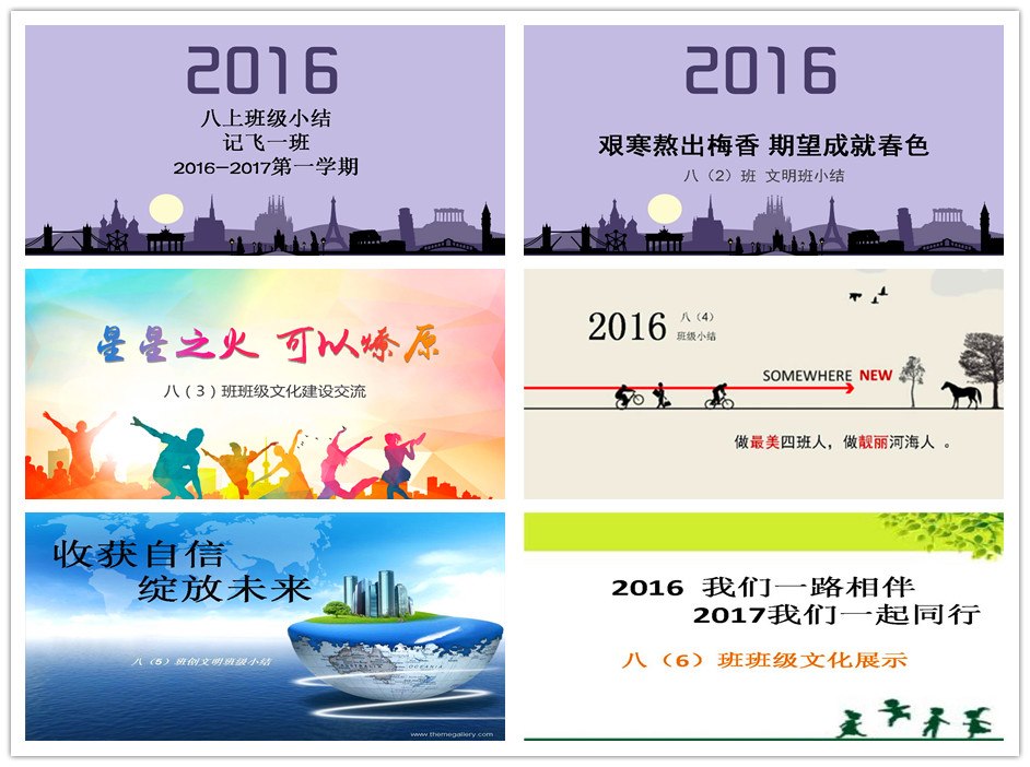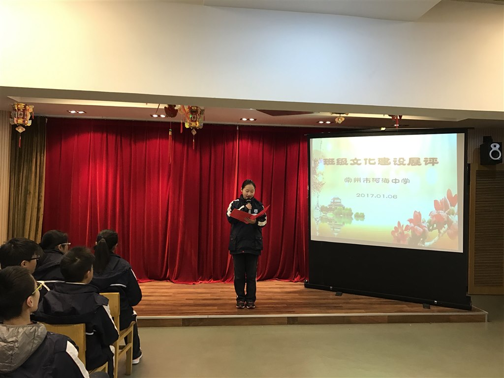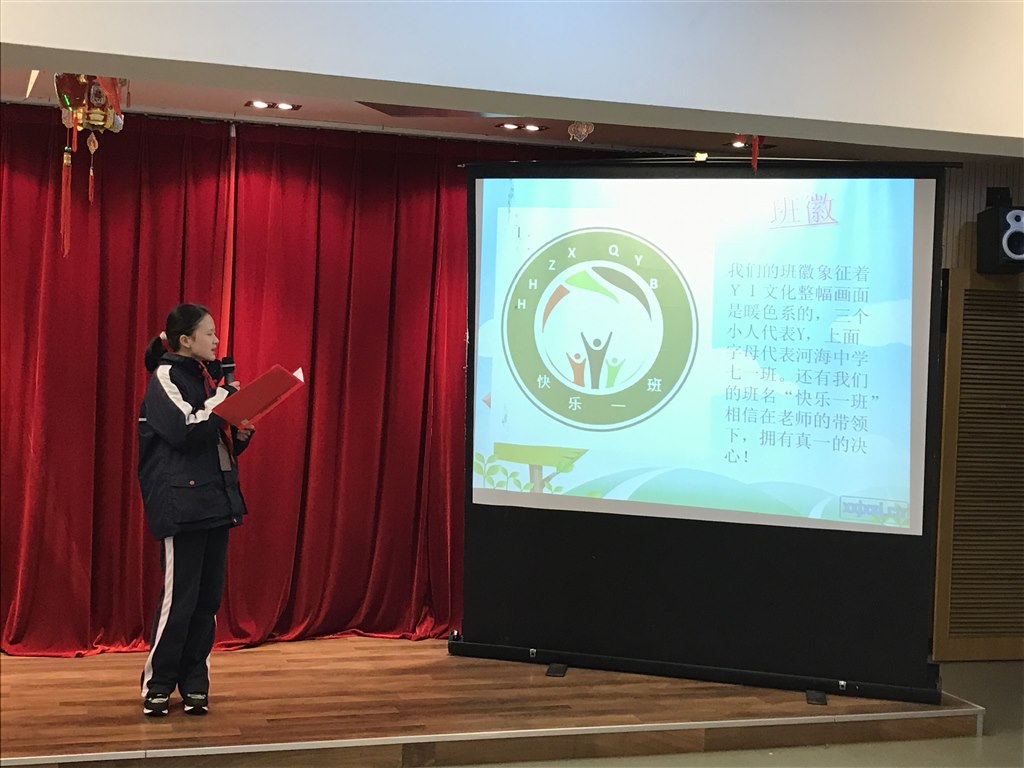 八年级同学同样以别具匠心的形式进行了丰富多彩的班级文化展示。八(1)班班长用三个小标题很好总结了他们对过去的回顾,对现在的努力,对未来的期望,充分体现了他们对青春梦想的展望。八(2)班班长以“艰寒熬出梅香,期望成就春色”为主题,从学习、工作、活动、展望四个方面总结了这一学期所付出的努力和得到的回报。八(3)班班长则以四个标题概括:“自律自省、积极进取”“脚踏实地、勤学好问”“各有所长、大放异彩”“目标明确、奋力拼搏”,展现了三班人亮眼夺目的光芒。八(4)班班长以“做最美四班人、做靓丽河海人”为主题,从常规学习等方面展示了同学们踏实勤恳的做事态度。八(5)班班长从细致入微的角度,详细阐述了他们在各个岗位、各个活动、各次考试中所付诸的精力与耐心,提出了“全面、合理、高效”的高要求,强烈突出了他们的期望与信心。而压轴出场的八(6)班班长则详细阐述了班级理念与文化色彩,从学习生活到班委管理再到学校活动,层次分明,充分展现了协作奋进的班级精神。