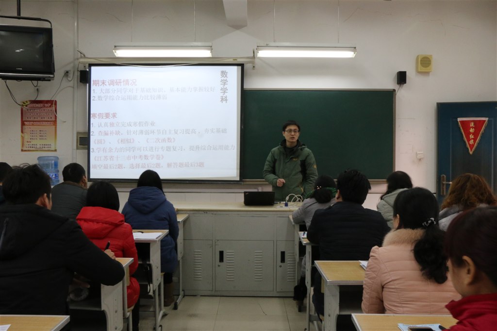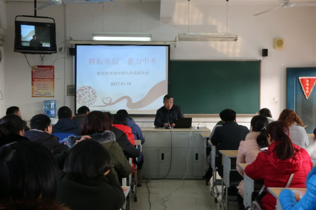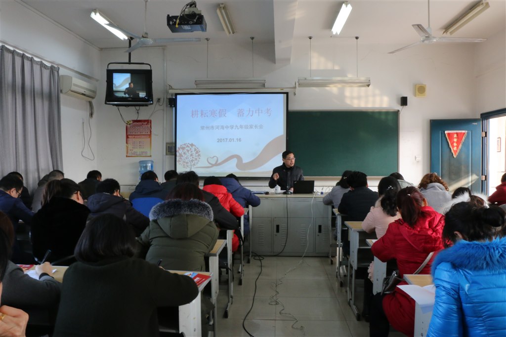 寒假生活即将开始,九年级学生的寒假生活应该怎样安排?学生如何做到休息与学习两不误?学生在家期间应注意哪些事项?针对这些问题,常州市河海中学在01月16号下午召开了九年级家长会。