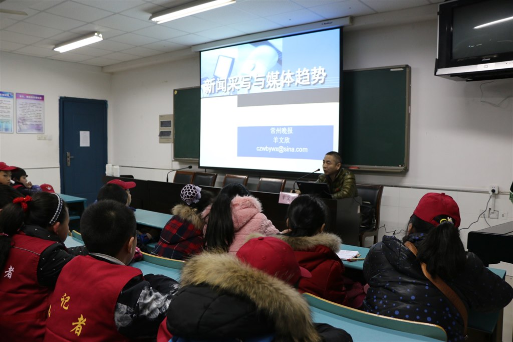 用完午餐后,我们还参加了小记者协会的冬令营开营仪式。开营式上,我校小记者代表戴雨霖作了发言。她的发言深深感染了大家,让大家对成为一名小记者有了更多的满足和期待。我校的贺文明副校长为参加冬令营的小记者寄予希望和要求。随后,常州晚报总编办主任羊文欣老师对我们进行了生动有趣的新闻培训,使我们对记者采访有了新的认识,大家都受益匪浅。
