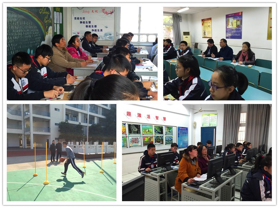 考核工作安排周密,紧凑高效。督导组的专家们首先听取了蒋顺国校长所作的学校素质教育工作汇报。蒋校长的报告围绕三个重点工作展开:坚持提高办学把握力,与时俱进,形成了新的办学理念;坚持提高实践创新力,强基固本,构建了新的课程框架;坚持提高发展持久力,登高望远,规划了新的学校蓝图。随后,学校管理团队围绕专家组提出的主动发展抓手、阳光体育活动、骨干教师成长等方面话题进行了现场互动交流。听课环节,督导组随机抽取了20节课,涵盖了语文、数学、英语、政治、物理、音乐、综合实践、地方校本等16个科目,学科覆盖全,年级分布齐,学生参与广,课堂评价高。问卷、访谈环节,督导组专家与我校多位教师、学生进行面对面的交流,对20位教师、50位学生和50位家长进行了随机的问卷调查。督导组的专家们还观看了升旗仪式、查阅了档案资料、抽测了学生实验技能和信息技术水平。学校精彩纷呈的社团活动也吸引专家们的目光,他们走进课堂并饶有兴趣地与同学们进行交流。