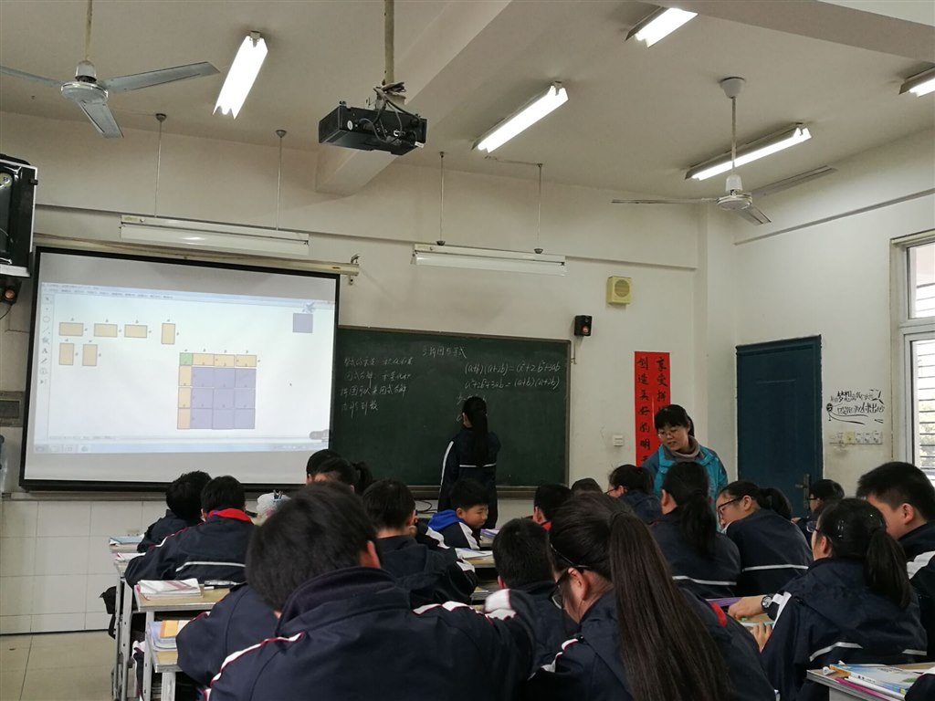 本次研讨,河海中学的周叶老师和二十四中的仝艺老师选择的教学内容是《拼图•公式》。课上,周老师和仝老师根据七年级学生的学习特点,设计了富有实效的训练环节,环环相扣,把因式分解、整式乘法与图形相结合,既训练学生的基础判断能力,又提升了学生的综合运用知识能力。对于课堂上学生出现疑问或解题出现错误的时候,两位老师能够抓住时机,加以点拨,让学生们从问题出发,深入浅出的教学风格让整节课一气呵成,学生获益良多。
