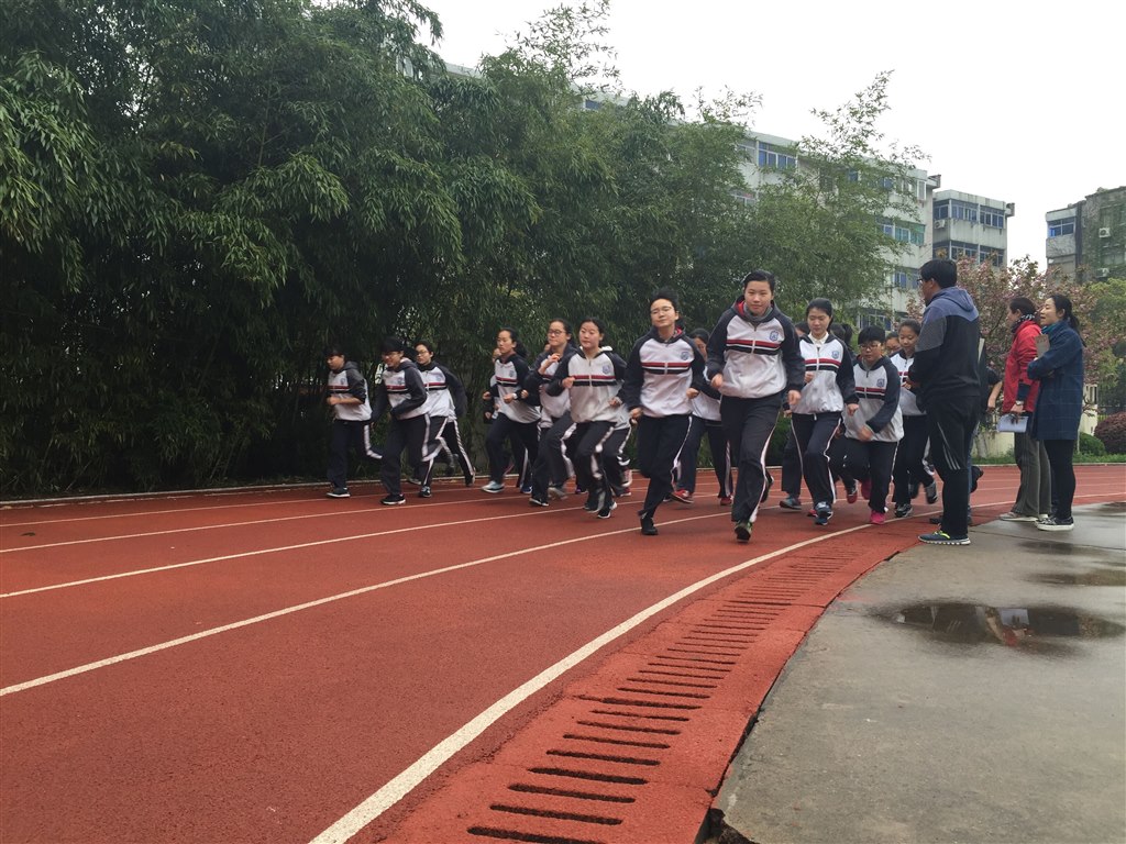 天公不作美,由于下了一夜的雨,场地湿滑,但丝毫不影响同学们的信心。他们穿着校服,排着整齐的队伍,精神抖擞地来到操场,提前做好准备活动。测试开始,耐久跑组同学咬紧牙关,全力冲刺;实心球组动作标准,一气呵成;校本技能五步拳动作整齐划一,受到了检查组领导和老师们的一致好评。