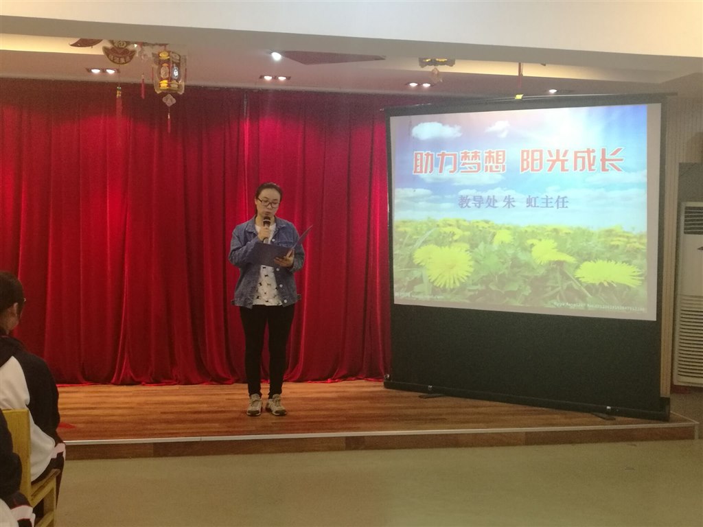 教导处朱虹副主任代表学校作了总结性发言。她结合同学们平时在常规、学习中存在的问题,希望同学们能正确面对成败,坚持充满自信;学会自主学习,助力青春梦想;提升文明素养,健康阳光成长。寥寥数语中无不寄予了学校对我们的殷切期望。