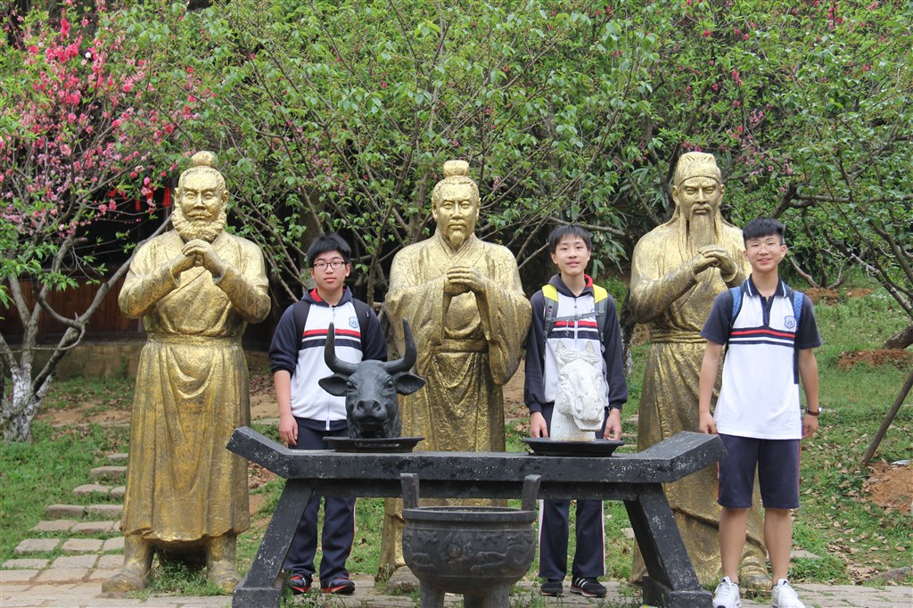 刘关张三结义的桃园桃色盎然,刘备三顾茅庐的草庐古韵古香,张飞吓破曹军的长坂坡坚挺屹立,讲不完的三国史,诉不完的三国情,同学们每置一处不是感叹建筑的恢弘,就是追忆在历史长流中永不磨灭的英雄人物,胸中一股激情砰然勃发。