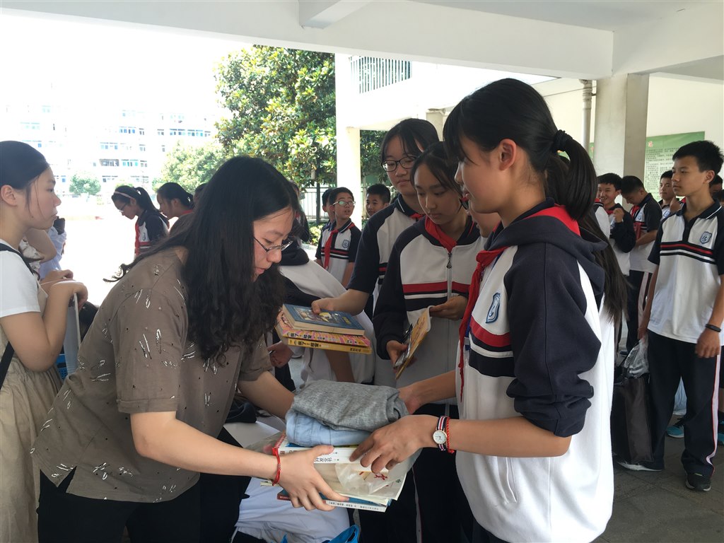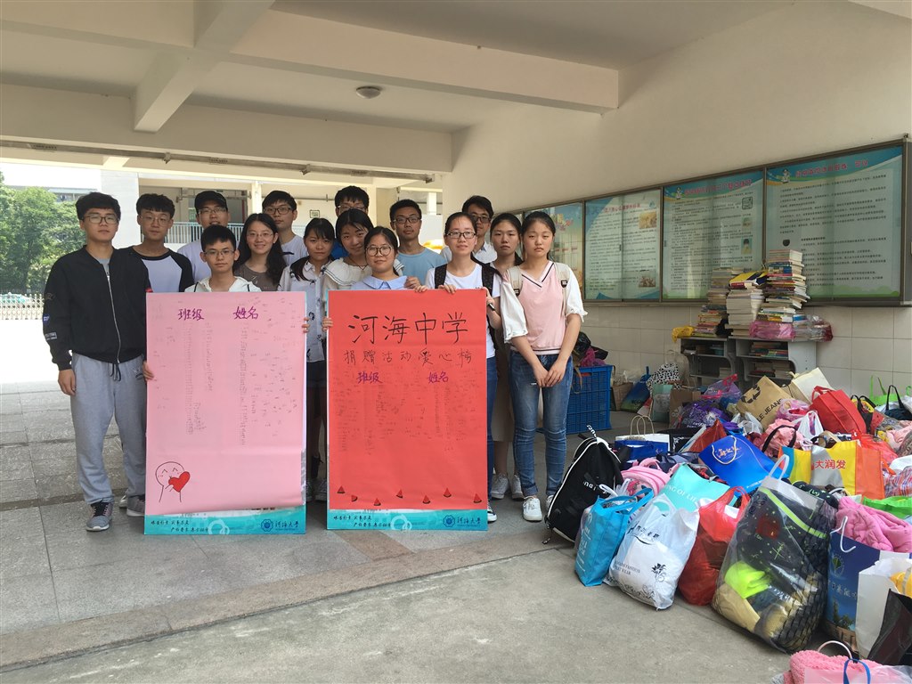 一到中午,河海大学的志愿者们早早地来到教学楼布置好捐赠现场,七八年级的同学们争先恐后地递上自己早已整理好的闲置衣物、书本等,为贫困上山区的儿童献上自己的一份爱心。他们笑着在捐赠板上签下自己的名字,用心地将大包小包的物品放入捐赠筐内。五颜六色、不尽相同的包裹在炎炎夏日的树木掩映下显得格外美观,在阳光的折射中仿佛隐约看到留守孩子们欣喜的笑脸。小小的募捐满载了同学们浓浓的爱心,捐助活动虽已截止,但是同学们的热情、爱心还未结束,那些凝聚着爱的物品将被送到需要帮助的孩子们的手中,为他们带去一份温暖、一点感动。