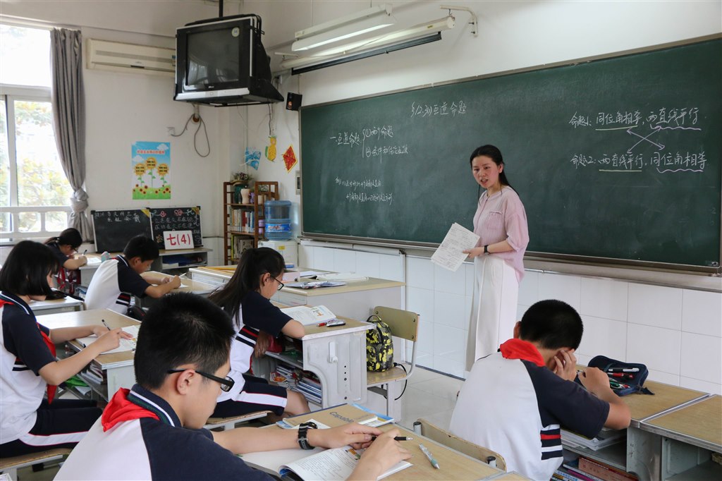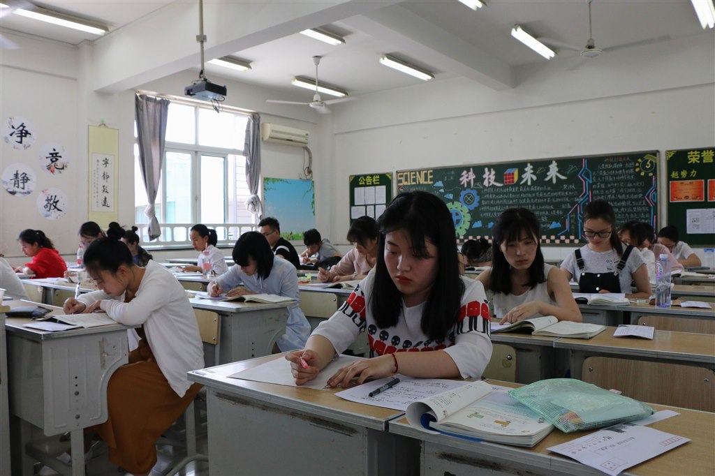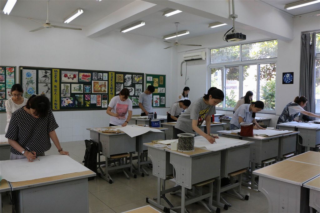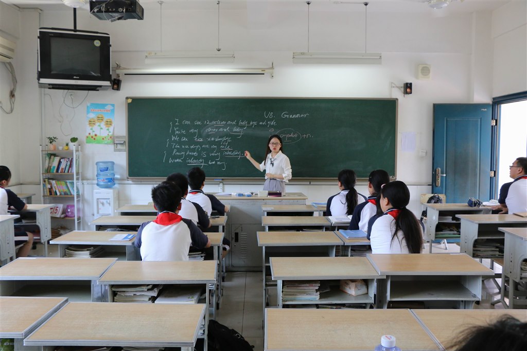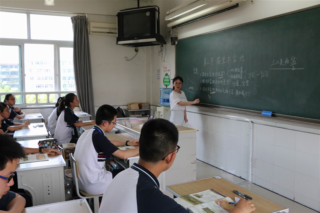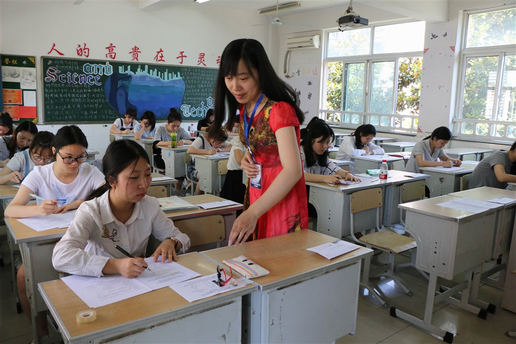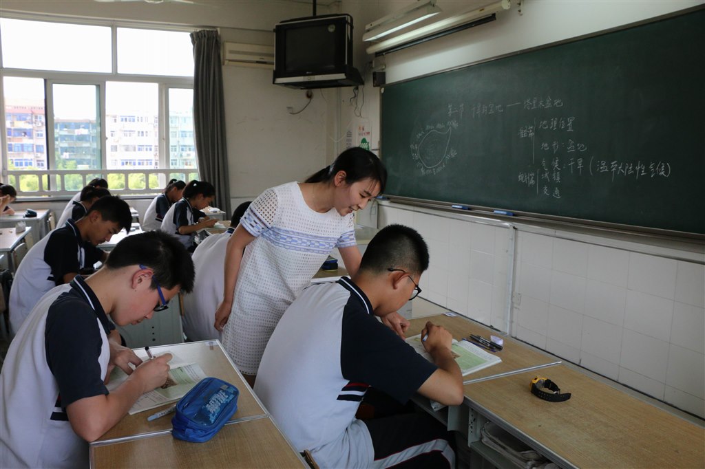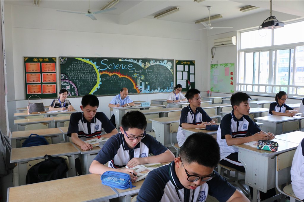 面试完的老师进休息室准备下午的上课。学校提前将所用教材放在老师的座位上,尽管还没公布课题,熟悉教材是必须的。