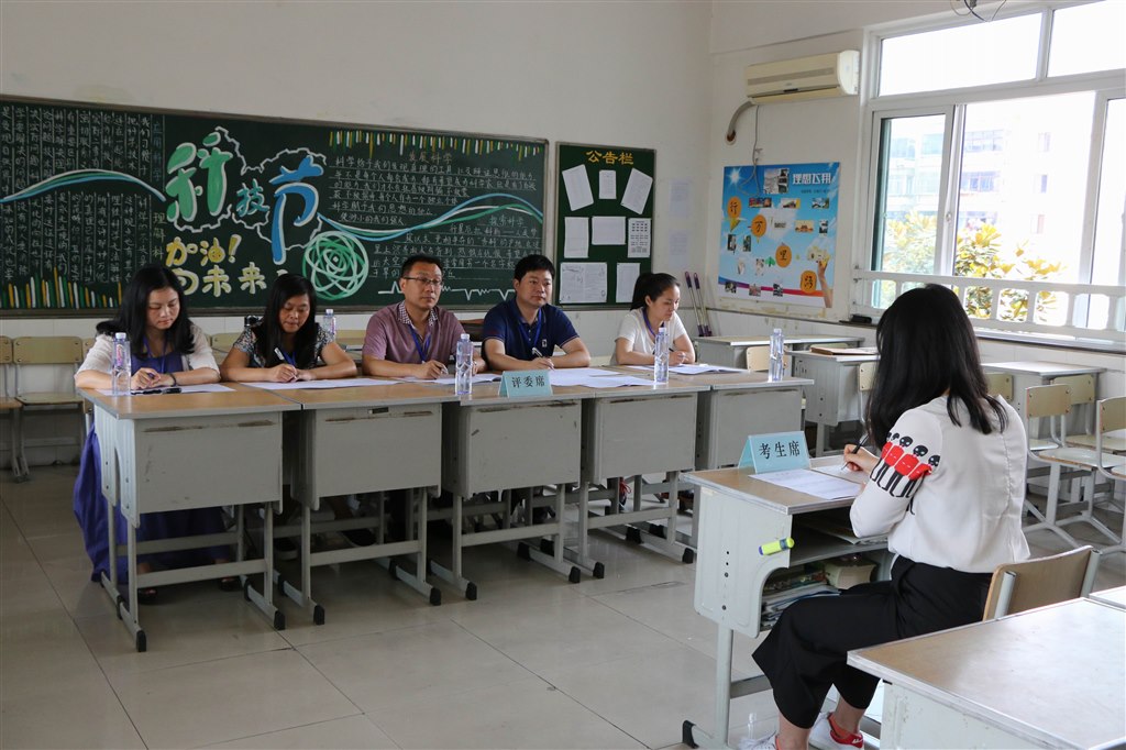 面试开始,面试官持证上岗,规范的面试程序,和蔼的态度,让老师们紧张的心情平静了许多。