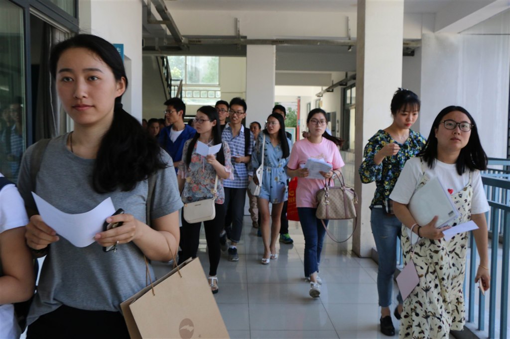 老师们认真答题,激烈角逐。根据招聘简章的规定,有42位老师进入面试、上课考核。