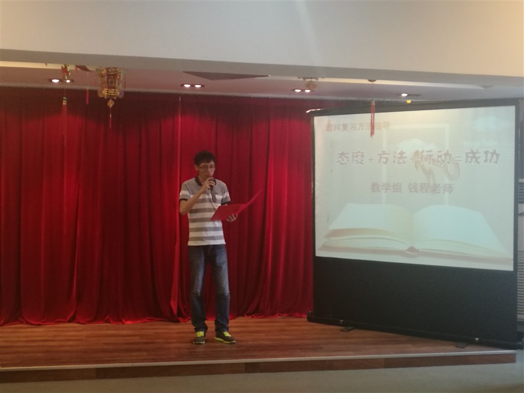 与此同时,学校对同学们给予了殷切的厚望。教导处戴亚萍主任从“赢在态度、赢在行动、赢在方法、赢在诚信”四个方面对同学们进行了详细地阐述与要求,要求同学们在思想上高度重视、时间上合理利用、方法上灵活高效,从而进行高效复习,备战期末。