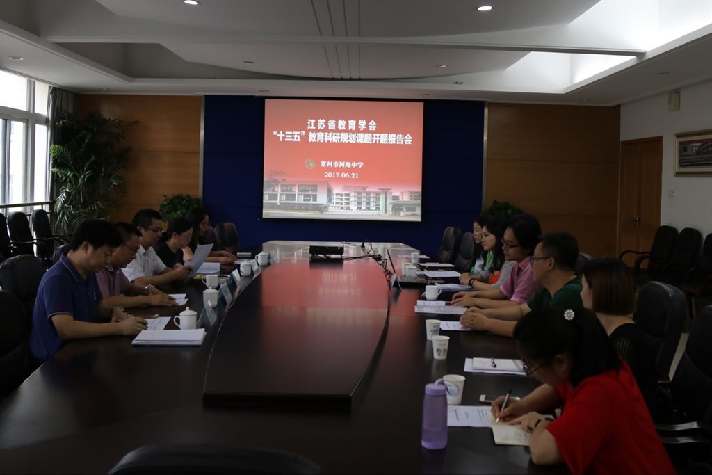 该课题是江苏省教育学会“十三五”教育科研规划的重点课题,由河海中学综合教研组长马郁茜老师任第一主持人,市教研室美术教研员车言宁任第二主持人,研究成员是来自全市六个初中的优秀美术老师,其中市学科带头人2人,区学科带头人1人。开题报告会专家组由常州市教科院科学规划办王俊博士、新北区美术教研员周文雅老师、常州市第二十四中学天宁分校副校长王沈华、常州市第二十四中学教导处副主任卢凌、常州市河海中学教导处主任戴亚萍五位成员组成。