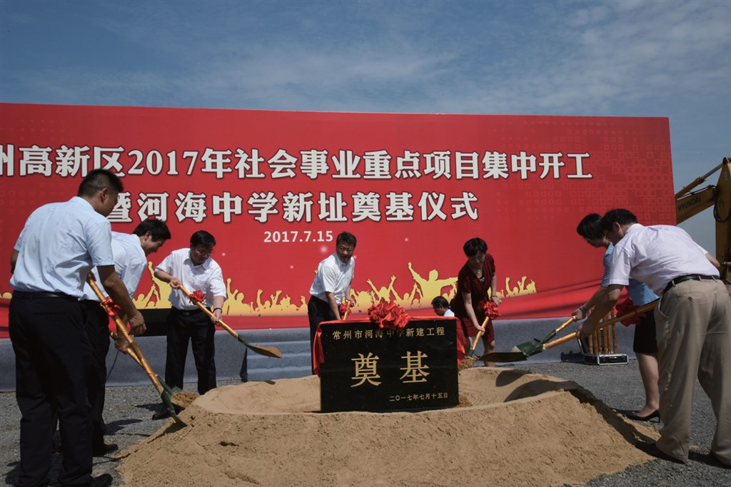当天奠基的河海中学新校址,位于汉江路以南、泰山路以西,总投资额2.5亿元,建筑面积近