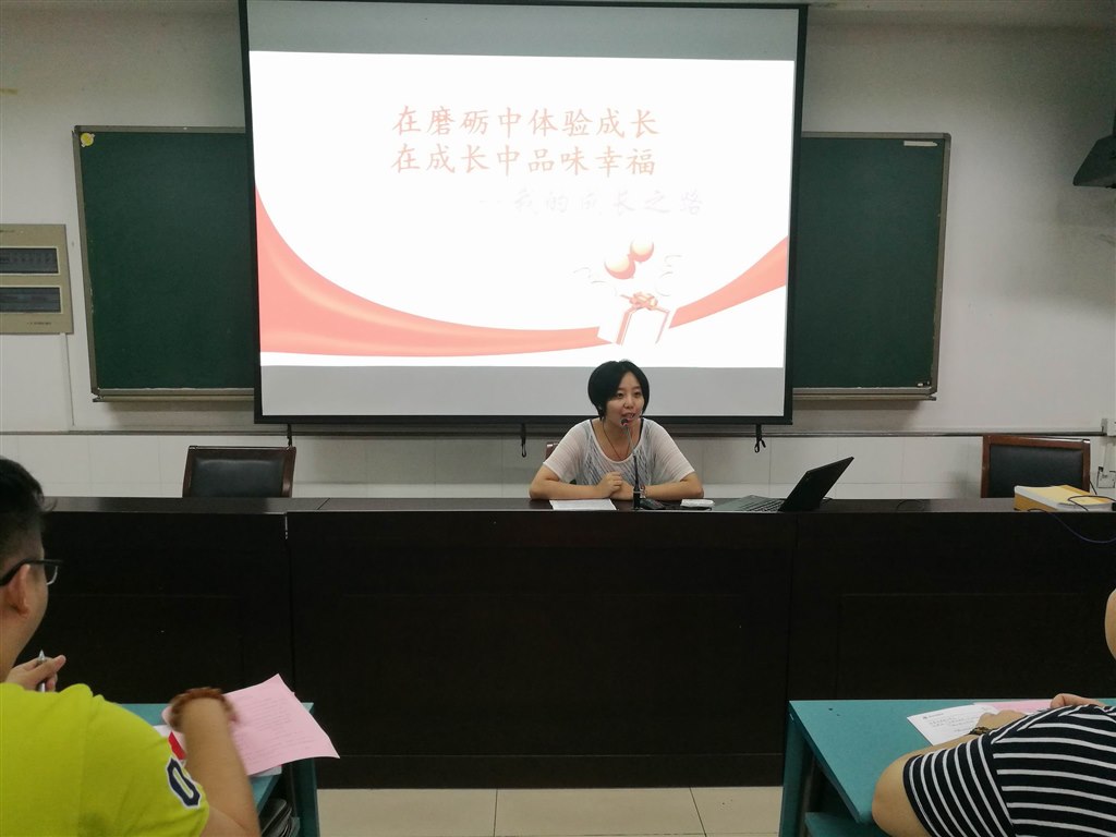 个人成长,抓铁有痕 成长绝对不是时间的流逝,而是自我的觉醒,是不断努力地主动进取。河海中学王丽君老师将自己的成长历程分为三个成长期:懵懵懂懂的被动成长期、循规蹈矩的半主动成长期、努力向上的自觉成长期。对新伙伴提出四点建议:既要模仿更要具备不断进取的状态、既要埋头干更要勤反思、既要不断积累更要研究创新、既要个人奋斗又要善于合作。提醒新教师专业成长过程中克服五个误区:盲目自信对学科教学缺乏敬畏之心、好高骛远在实际工作中不能脚踏实地、浅尝辄止站稳讲台后立即“安于现状”、愤世嫉俗对专业发展的特色“不屑一顾”、教育教学工作和专业发展不能齐头并进。葛娟萍老师用成长定义自我,她认为:自我的勤奋是教师成长的基石;同伴的互助是教师成长的助力器;不断学习是教师成长的加油站;教学反思是教师成长的纠偏仪。努力做有特色的教师。
