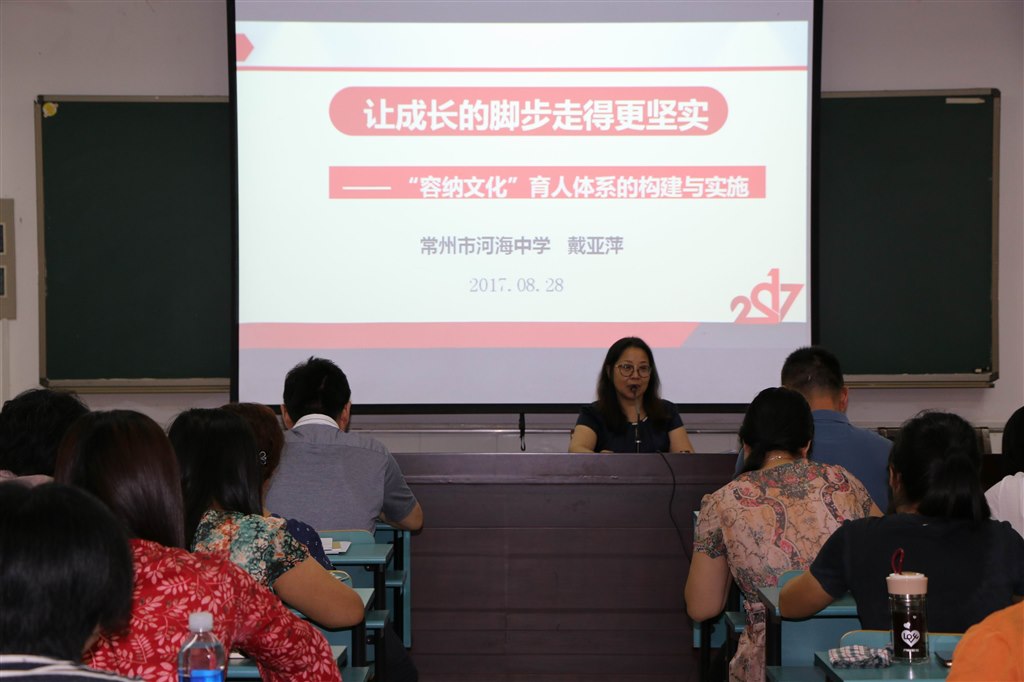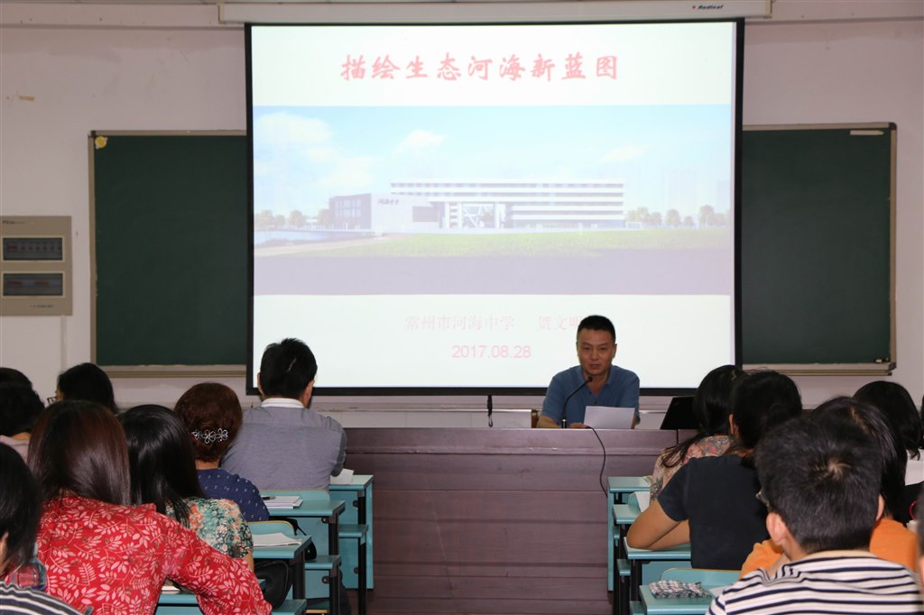 描绘新蓝图,品质要提升 近期,市教育局出台了常州市学校建设新三年行动计划,学校建设包含诸多方面。结合生态校园提升工程,贺文明副校长给老师们展示河海新校生态校园建设的美丽蓝图,共六方面:新校概况、生态景观、海绵校园、绿色交通、绿色节能、智慧校园的设想。结合学生品格提升工程,教导处戴亚萍主任谈了三点思考:创新有感染力的课堂范式、开发有生命力的特色资源、构建有影响力的共育平台。