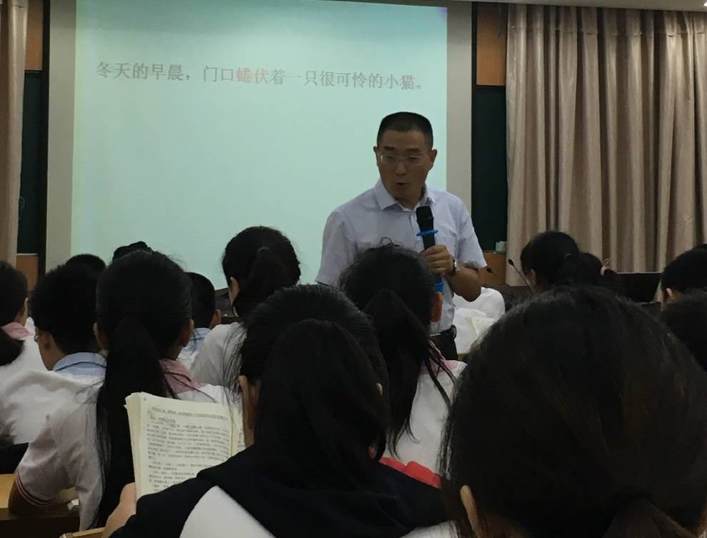 首先,二十四中梁增红老师以七年级上册课文《猫》为例,为我们上了一堂别开生面的新课。课堂上,同学们踊跃举手发言,一个个都是妙语连珠,口吐莲花;而梁增红老师或幽默或激昂或深情或严肃,情随文动,把在场的每一位学生和老师都带入了课文情境之中。短短的一堂语文课,却让各位老师收获了很多。