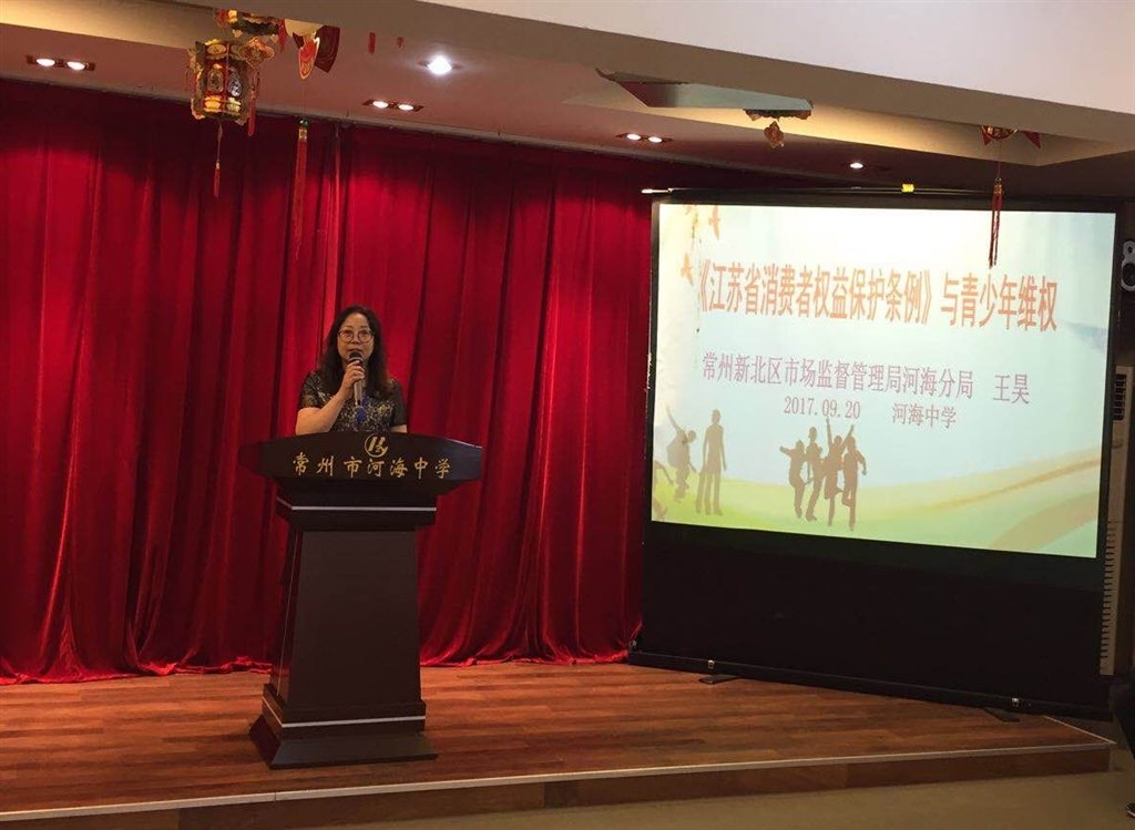 消费者权益的保护一直是社会的热议话题,为了让学生树立维权意识,学会维护自身的合法权益,我校特意邀请了新北区市场监督管理局河海分局王昊同志,为大家作了消费者权益的知识讲座。