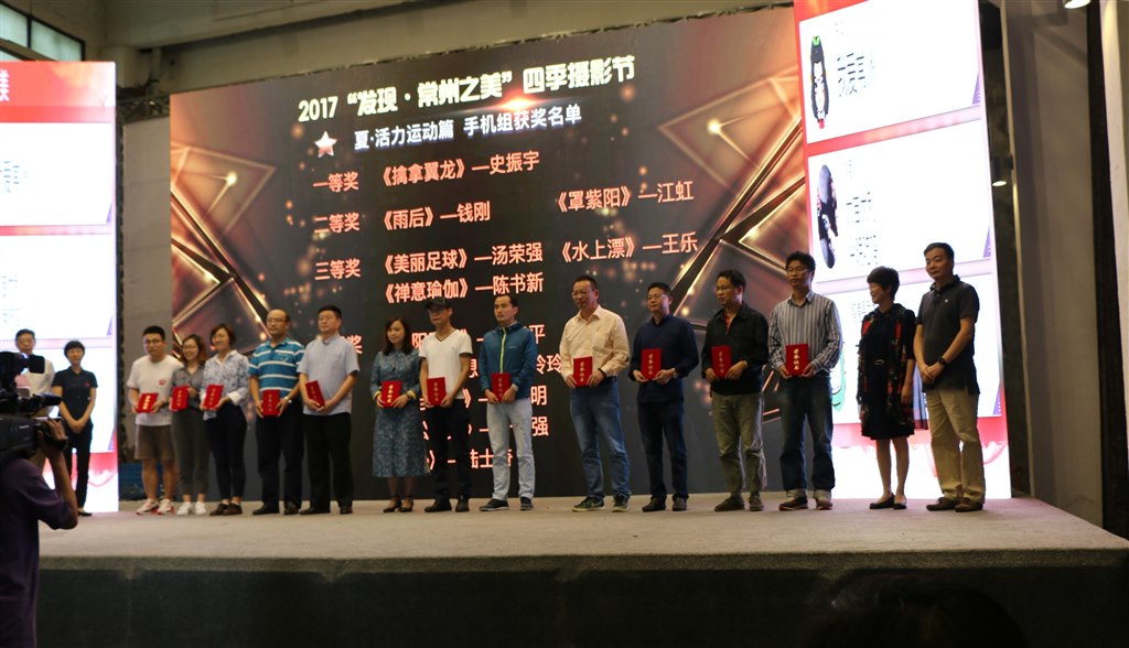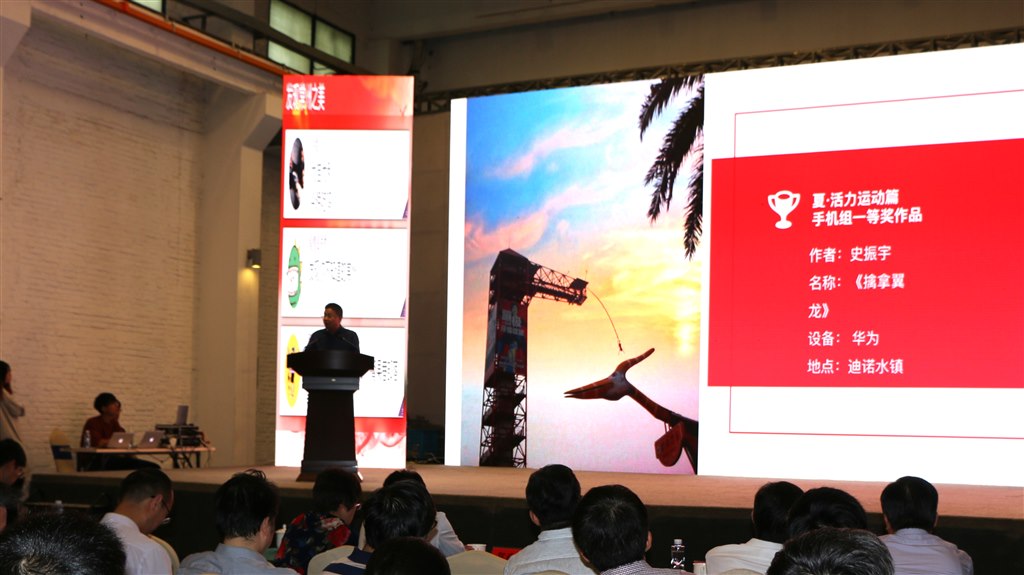 河海中学物理老师史振宇的摄影作品《擒拿翼龙》荣获手机组一等奖,参加颁奖典礼,并作为获奖代表发言。他围绕作品本身侃侃而谈,用错位的技巧表现常州代表性景区恐龙园蹦极者勇敢,紧扣美丽、活力两个关键词,从而体现常州之美。他表示摄影与其生活密不可分,将以此次获奖作为新的起点,继续勤奋工作,多拍照片,用他的视角来展现常州之美,用他的信念来大爱常州。