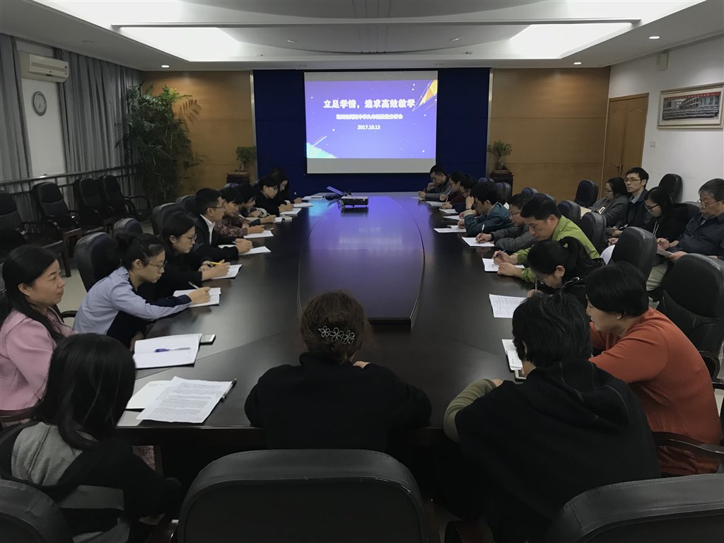 此次会议由三部分内容组成。第一部分,语文丁亚华、数学巢丽娟、英语王丽君、物理胡烨、化学李小平、政治毛德庆、历史陈莉等七位老师立足学情,交流了目前学生学习中的问题,分析了在教育教学方面的得失,并据此提出了各学科如何更好地追求高效教学的设想。体育薛明波老师对九年级的学生身体素质和训练情况作了分析,面对问题和困难,提出了更高效的教学部署。